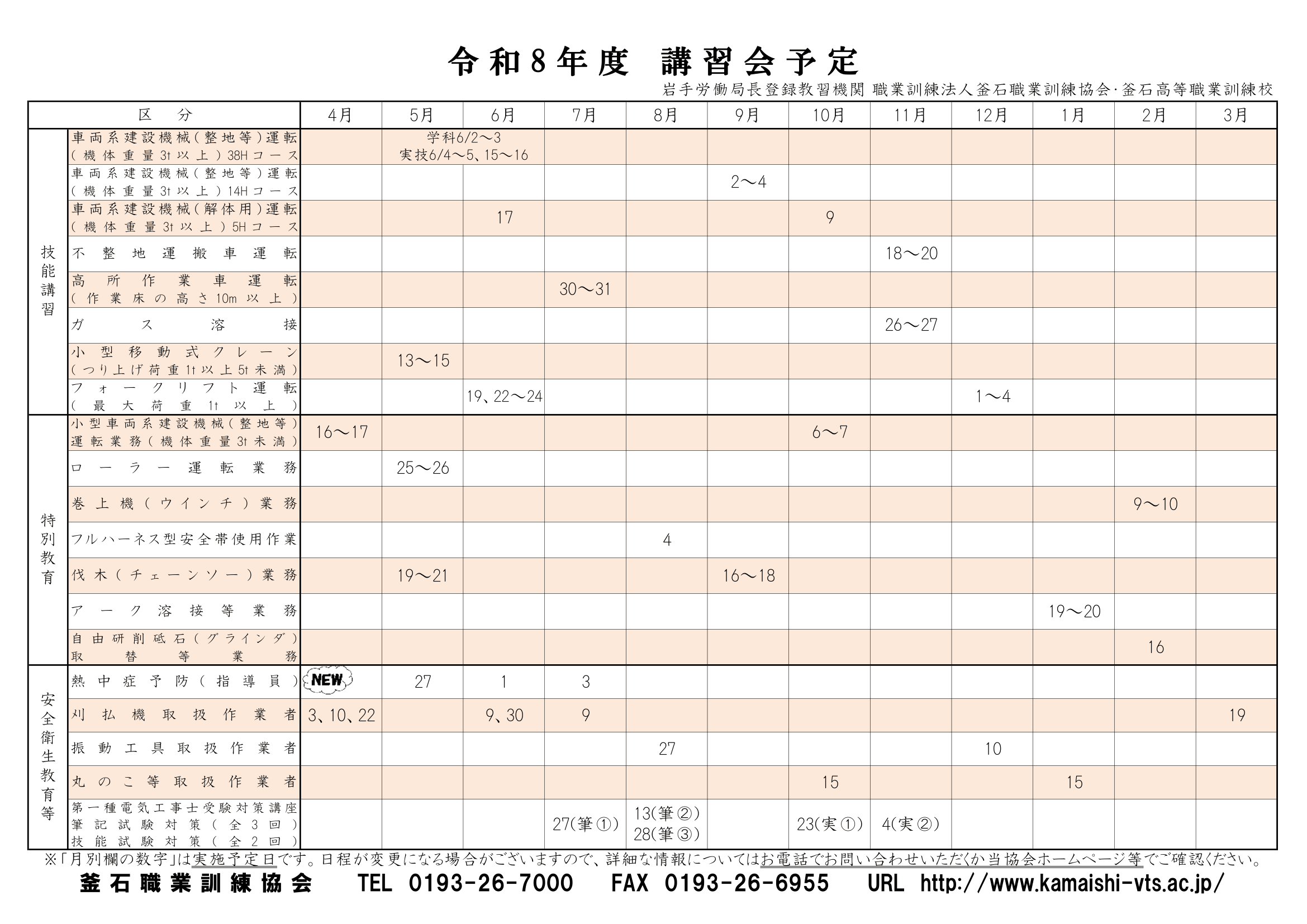 お申込み・問合せ:釜石職業訓練協会 TEL:0193-26-7000 FAX:0193-26-6955
