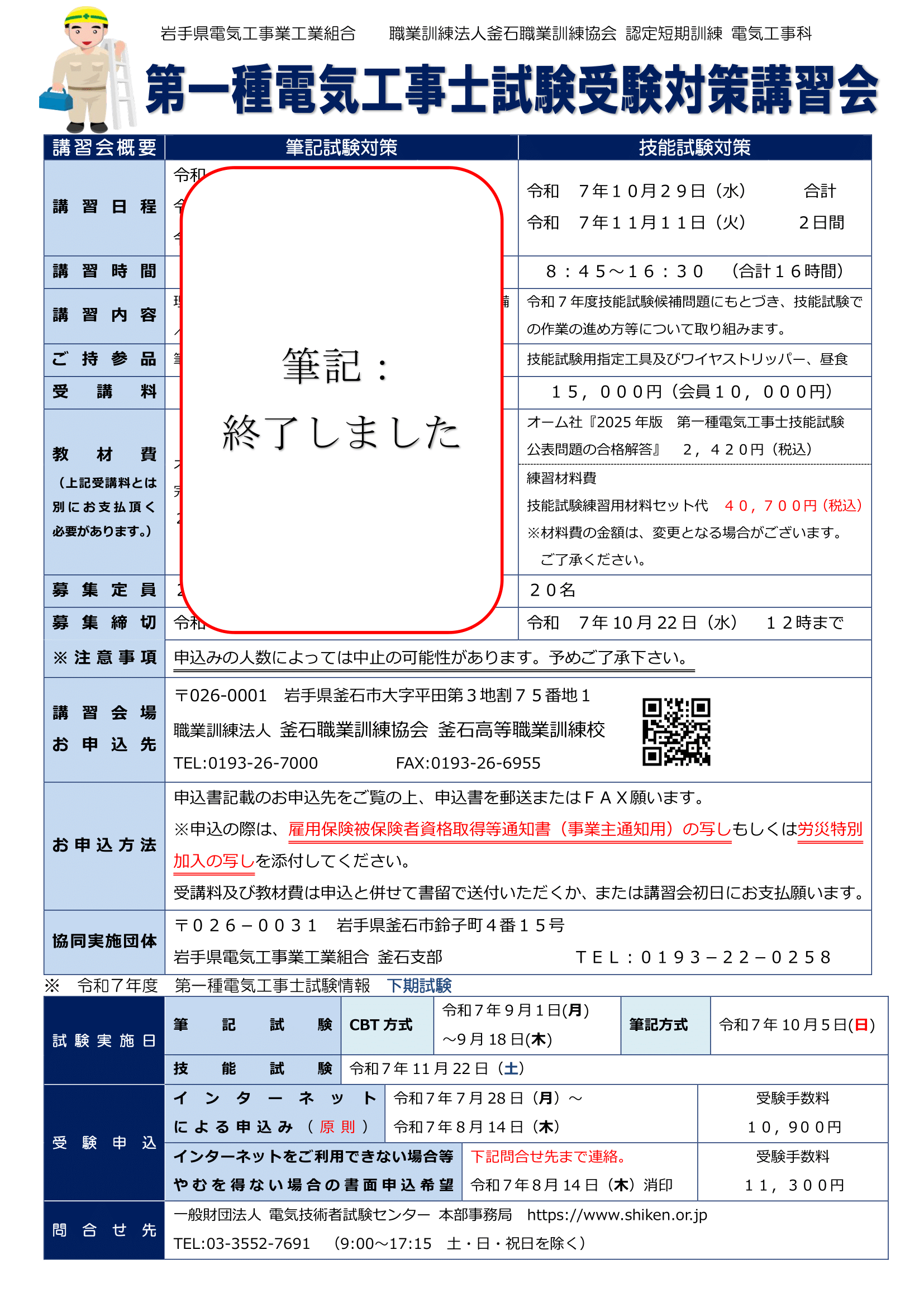 令和7年度 第一種電気工事士試験(技能:11月22日(土))