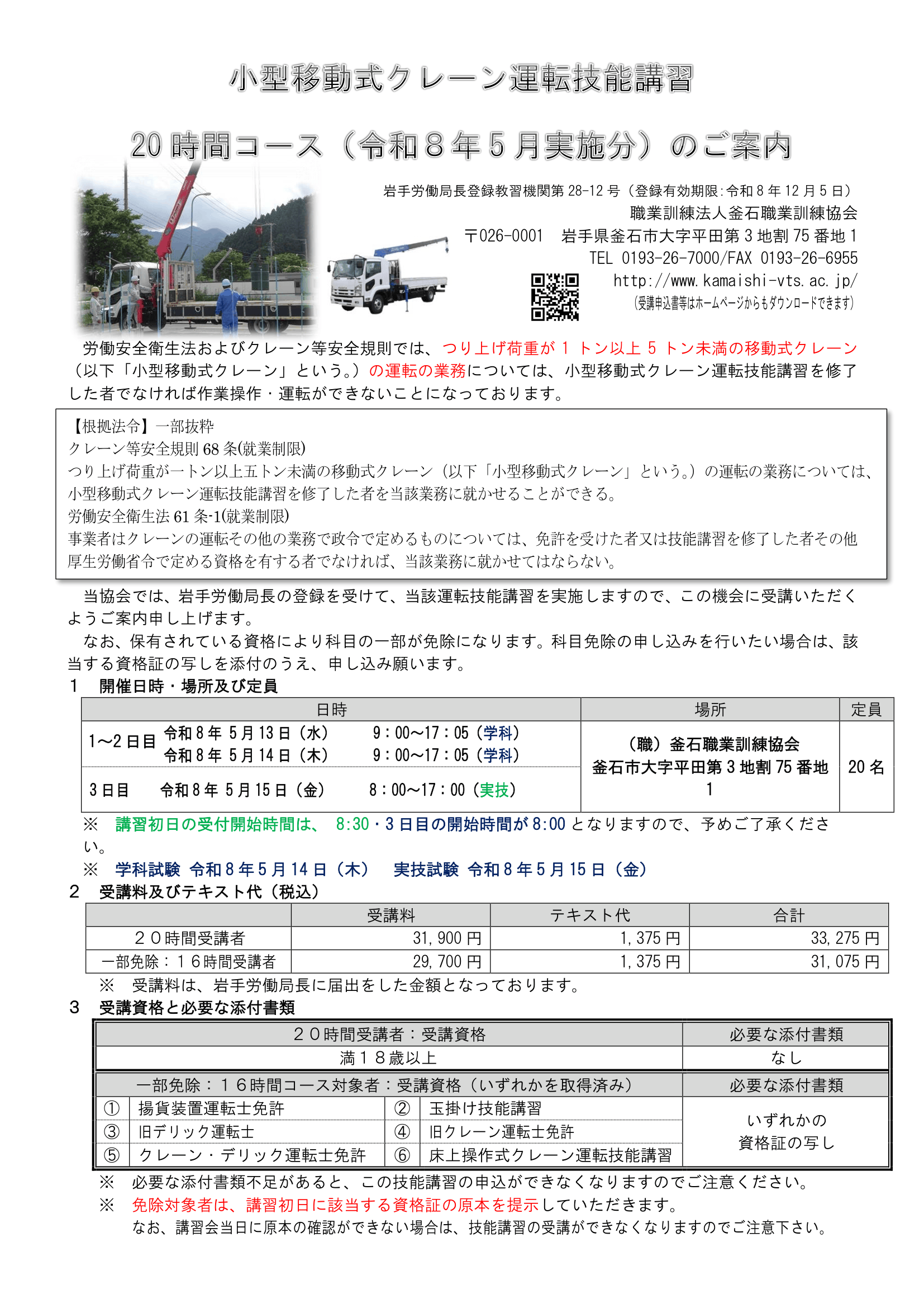 開催場所・連絡等:(職)釜石職業訓練協会 TEL 0193-26-7000 FAX 0193-26-6955