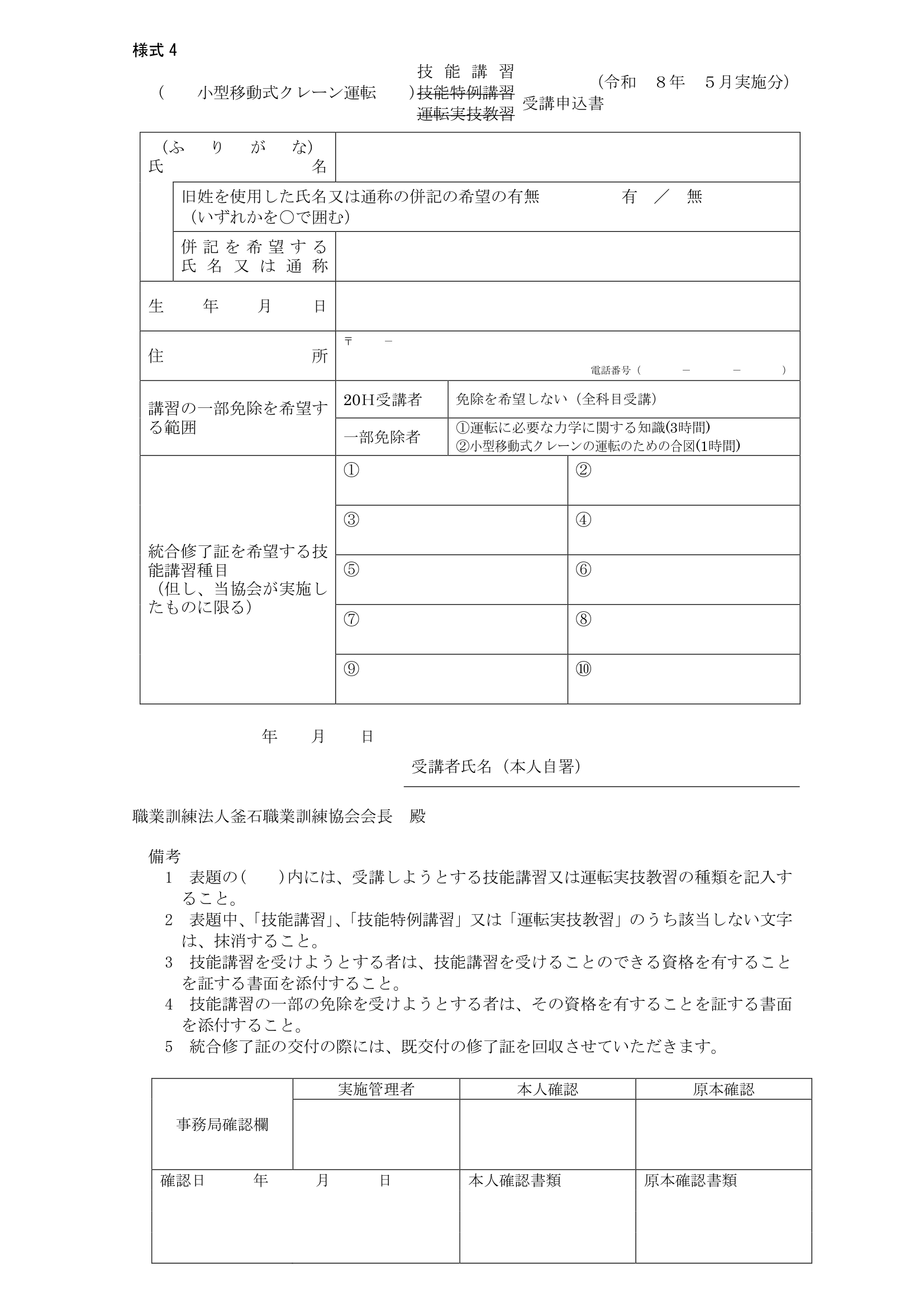 申込方法:①電話にて予約状況を確認(0193-26-7000) ②受講申込書・写真2枚・受講資格の添付書類を郵送又は持参 ③申込締切日時以降に開催・中止の連絡をします。 ④開催連絡がありましたら、所定の方法(2枚目)で受講料等を納付。