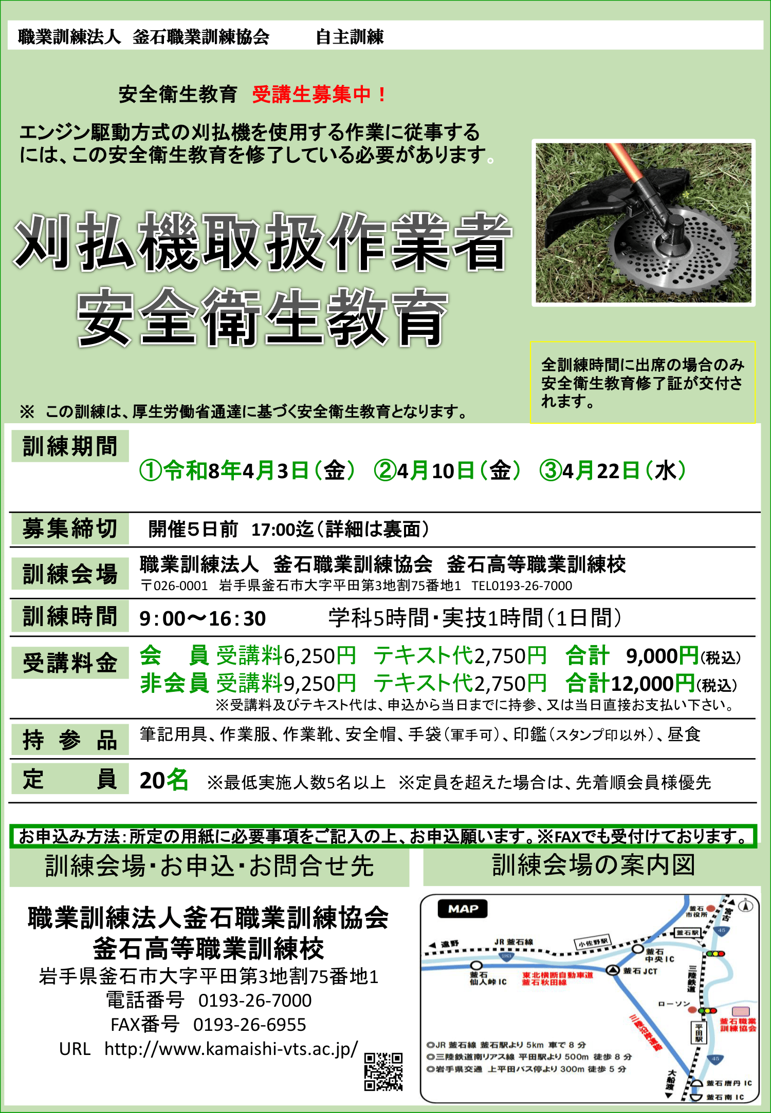 お申込み・問合せ:釜石職業訓練協会 TEL:0193-26-7000 FAX:0193-26-6955